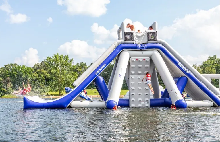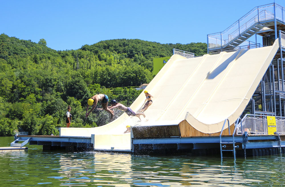 Le Plan d’eau du Colombier à Anse voit chaque été flotter de gros modules gonflables à sa surface. Cette année, ils seront au nombre de 25! Toboggan de 15 mètres de longueur, matelas rebondissant, poutres et poteaux d’équilibre s’enchaînent pendant une petite heure de rigolade. On saute, on tombe, on crie… et on se rafraîchit. En plus, le site est accessible aux petits warriors dès l’âge de 5 ans. Même pas besoin de savoir nager! La nouveauté 2025: Le Monkey Dome, qui met toute la famille au défi de se balancer ou de grimper sans tomber. L’eau n’est pas froide du tout et on peut prolonger la journée avec une baignade, la location de kayaks et paddles, des jeux pour enfants et bien sûr, un bon pique-nique. Pour les papas et mamans en mode compète, l’équipe de Beluga vous offre une session gratuite si vous battez le record de vitesse pour faire le parcours complet…