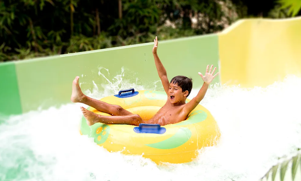 Ce site animalier et de loisirs classé parmi nos parcs préférés en 2025 propose un espace aquatique de 5 toboggans pendant les week-ends de juin et tous les jours en juillet et août. Que ce soit en mode kamikaze ou plus tranquille, sur une bouée ou en course avec les copains, les glissades seront le moment fun de la journée, après avoir salué les différents animaux du parc. Et pour continuer à se rafraîchir, rendez-vous à l’AquaTouro’Splash, une plaine de jeux aquatiques où il est interdit de ne pas s’éclabousser! Le fameux seau qui se remplit et se déverse brusquement sous les cris des enfants, c’est un classique de l’été! On retrouve le même genre d’aire de jeux d’eau sous le nom d’Exotic Island dans un autre parc chouchou des Lyonnais qu’on ne présente plus: Walibi!