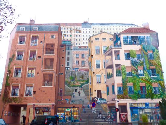 Dans cette (re)découverte de quartiers qu’on pensait connaître par cœur, Bénédicte nous fait prendre conscience d’une réalité : le street art est devenu un art presque « normal ». Il est monétisé, il a ses codes et ses hiérarchies. Il a bien sûr ses « maîtres » : il suffit de penser au succès planetaire de Banksy. Et ses techniques sont très variées: le « graf », le moulage, la photo, le travail sur papier, etc. C’est cette grande diversité que l’on découvre lors de ce parcours sur la Grande-Côte et dans le dédale des pentes de la Croix-Rousse. Les enfants repèrent 10 œuvres d’art à la minute: je me rends compte qu’ils peuvent avoir une vue digne de celle d’un faucon …