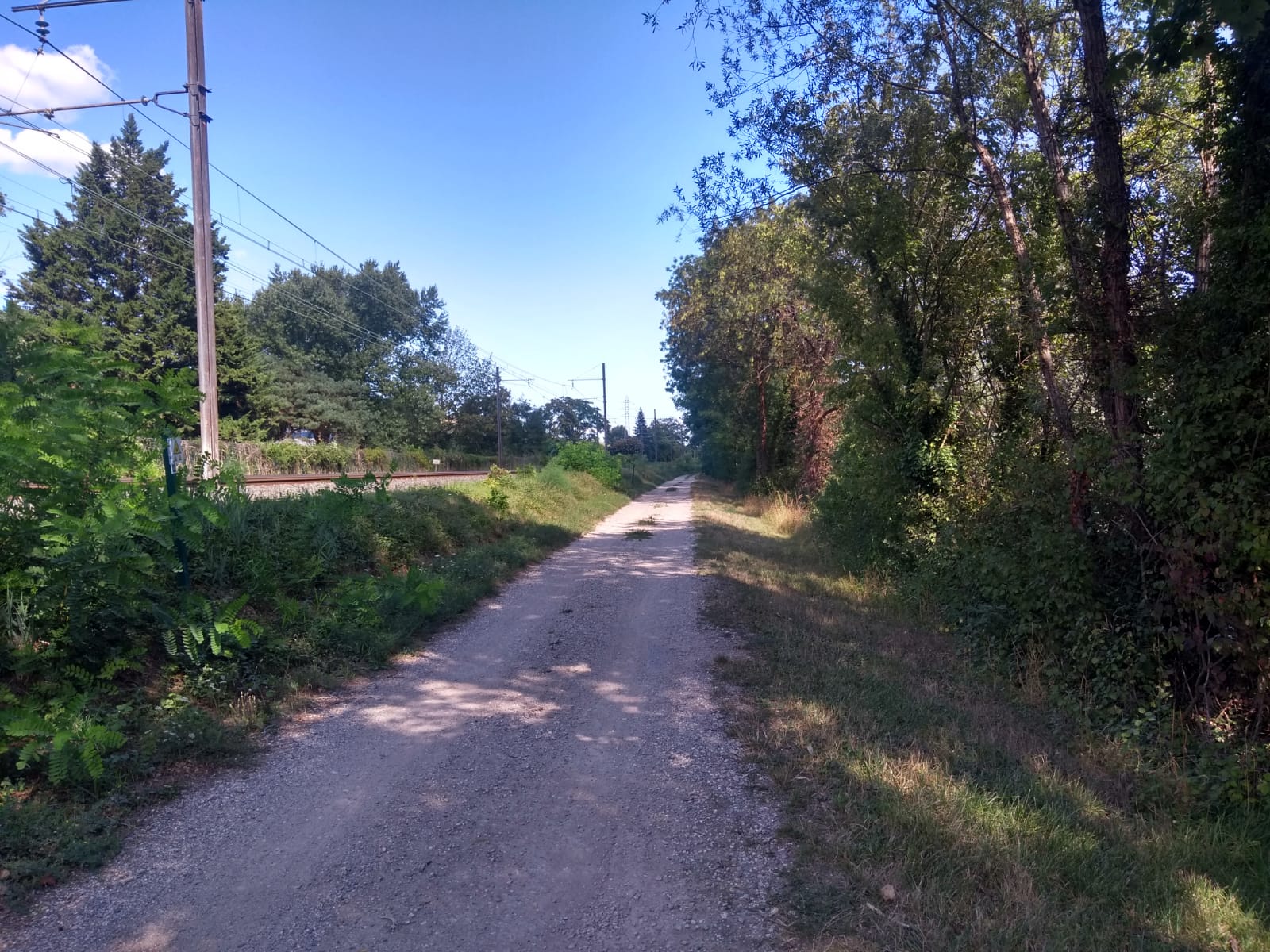 Vous continuerez en direction du chemin de fer, c’est à sa droite que commence le Chemin du Bac à Traille sur la commune de Caluire et Cuire.