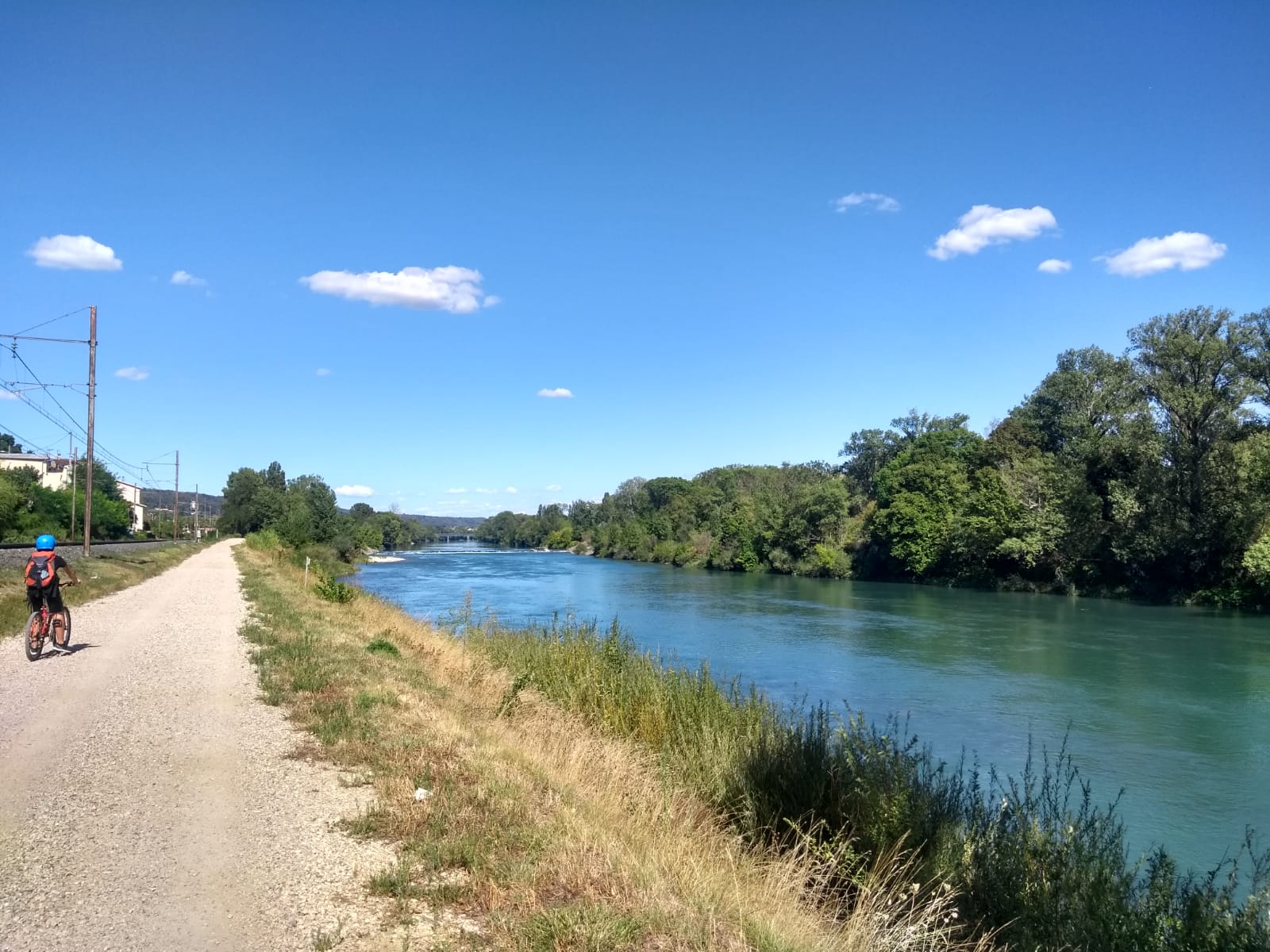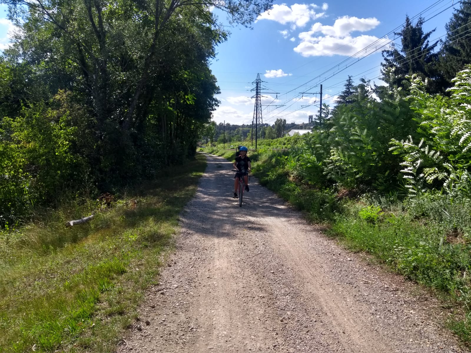 C’est un chemin certes un peu caillouteux mais très roulant. Un vélo’v malgré ses 3 vitesses et son poids passera sans encombre comme le 16 ou 14 pouces des enfants.