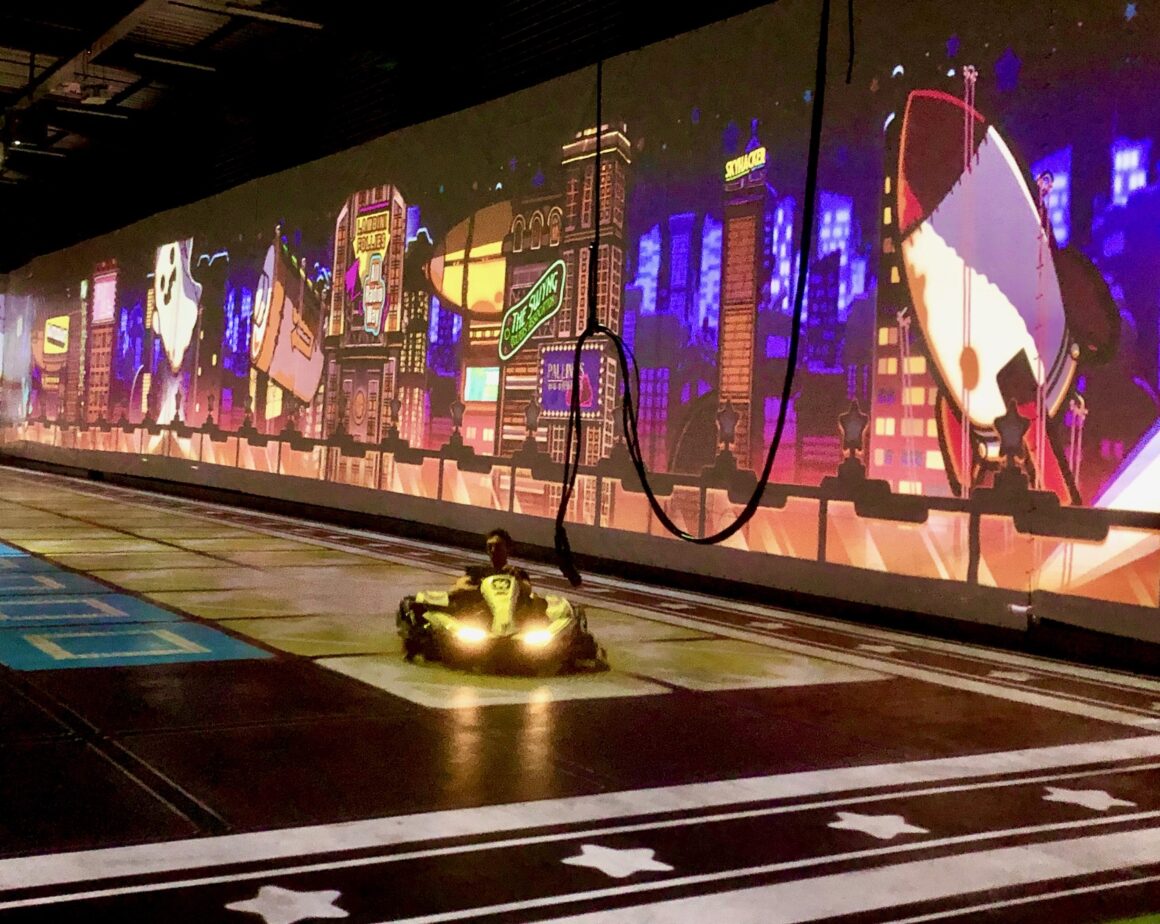❤️ On a aimé: Le volume sonore franchement très correct et le souci de la sécurité: dispositif anti-collision, bouton d’appel d’urgence, surveillance humaine permanente en bord de piste et pas de saturation de l’espace (10 karts maximum). La prise en main est simple: une pédale de frein, une pédale d’accélérateur, deux commandes principales au volant et un écran type tablette qui nous donne toutes les infos. Enfin, on a apprécié l’interaction et la variété des défis, en particulier ceux qui sont plus collaboratifs et dans un esprit moins « compète »!