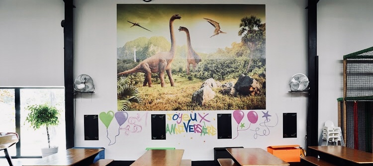 La dernière partie du parcours nous plonge dans un univers plus « Jurassic Park », avec là encore plusieurs petites capsules vidéos sur les dinosaures. Les vélociraptors et autres tricératops ont toujours la cote auprès des kids. On annonce d’ailleurs, à 6 km d’Anse, l’arrivée prochaine d’un parc Dinopedia sur l’ancien site du parc aquatique des Cascades de Trévoux.