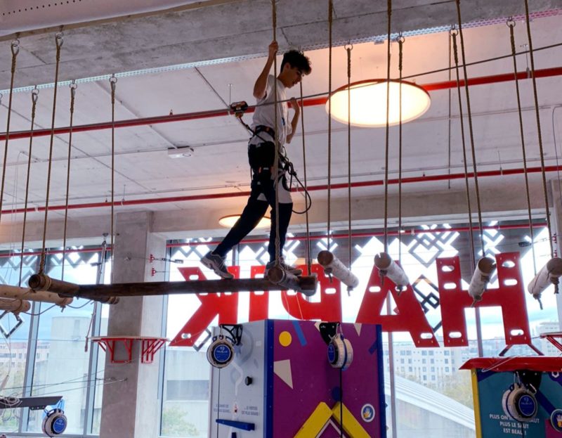 Et oui, donc, aussi, Hapik propose deux parcours d’accrobranche. Nous n’avons pas pu tester malheureusement celui de dehors car il y avait un vent de dingue, mais ils ont fini par le parcours intérieur histoire de se remettre un petit coup d’adrénaline.