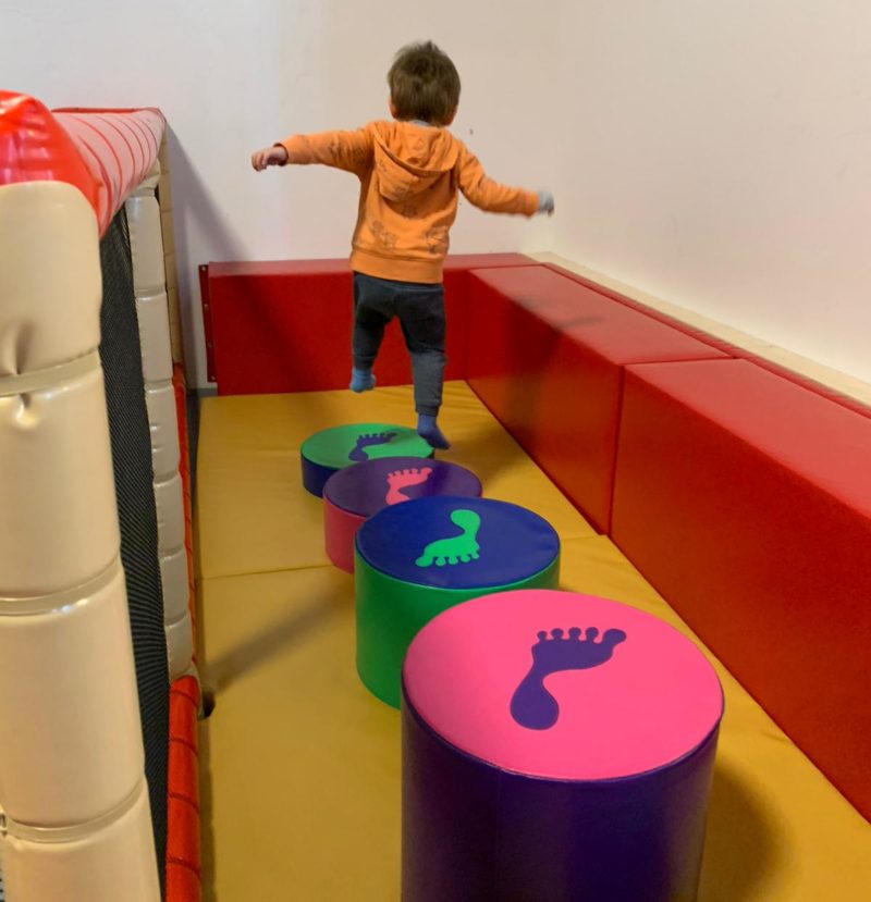 Alors… non, pas avant 4 ans. Forcément, faut être quand même un minimum autonome. En revanche il y a un petit espace avec des modules en mousse sur lesquels grimper pendant que les frères et sœurs s’ébrouent joyeusement dans les hauteurs. Sur le coup, je me suis dit que le minot n’allait jamais vouloir rester là et que c’était trop petit. tu parles ! Il est resté l’heure entière, il suait comme un veau à sauter, courir, rouler et je te laisse deviner de celui qui a hurlé comme un cochon quand il a fallu partir. Évidemment.