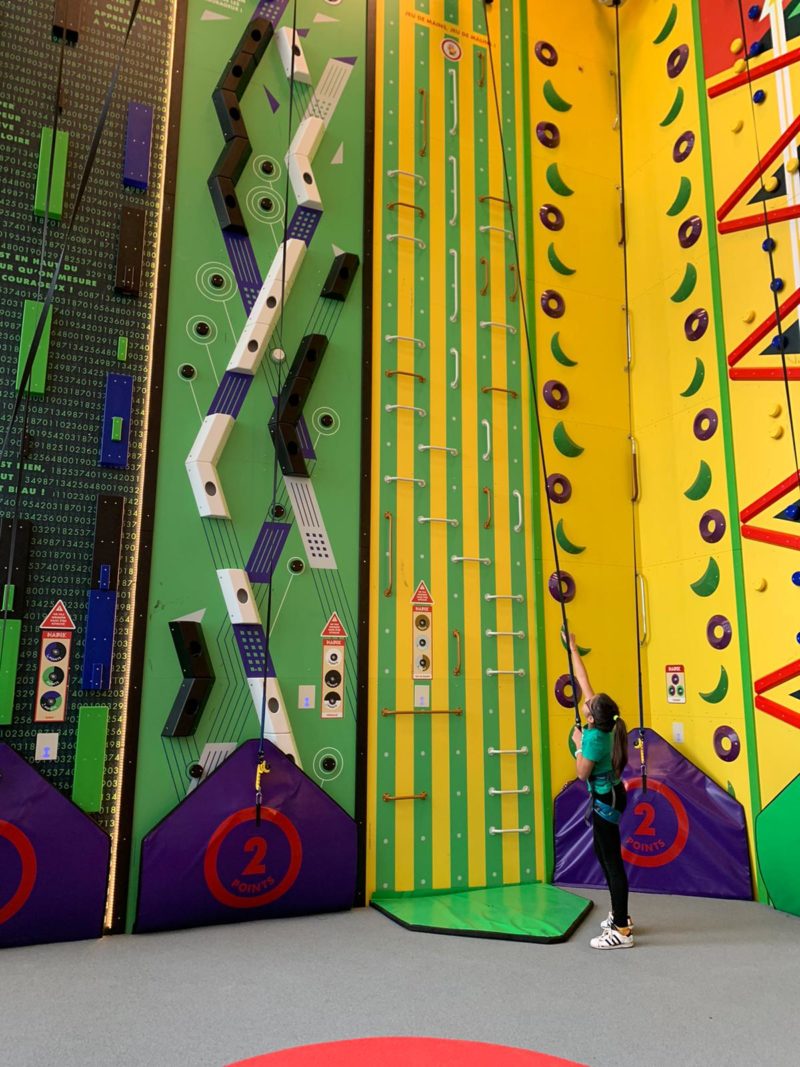 J’avoue, je me suis arrêtée là au niveau du test, j’ai plutôt envoyé mes enfants tenter leur chance avec leur vertige. J’en ai trois, statistiquement, il allait m’en rester au moins un à la fin de notre heure de grimpe.