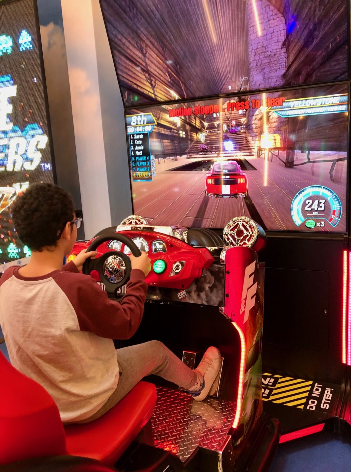 👎 On a moins aimé: Le prix, avant tout. Il faut bien reconnaitre que c’est une sortie qui revient relativement cher, d’où la nécessité de fixer des limites claires de budget. On a tout intérêt à investir dans une carte de 50€ ou plus, car les tarifs pratiqués sont dans ce cas avantageux: plus on achète de crédits, moins ils sont proportionnellement chers. Quitte à en garder de côté pour un prochain passage à la Part-Dieu! Et pour les parents un peu allergiques aux ambiances bruyantes et clinquantes, ça peut être une épreuve. Il faut bien choisir son moment et éviter les grosses affluences pour ne pas rajouter du brouhaha aux sons des jeux vidéo tapageurs…