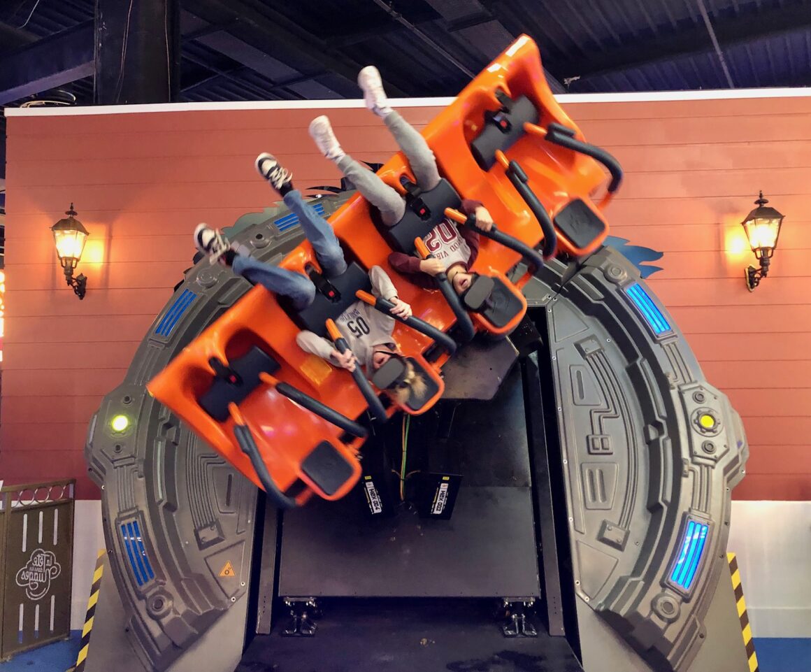 ❤️ La VR : Le petit bijou du centre, c’est une nacelle articulée qui fait penser à des sièges de grand huit. On y embarque munis d’un casque de réalité virtuelle et c’est parti pour une expérience plutôt dingue avec effets looping et gros coups de vent! Oui, ça débite un peu plus d’unités, mais c’est assez mémorable…