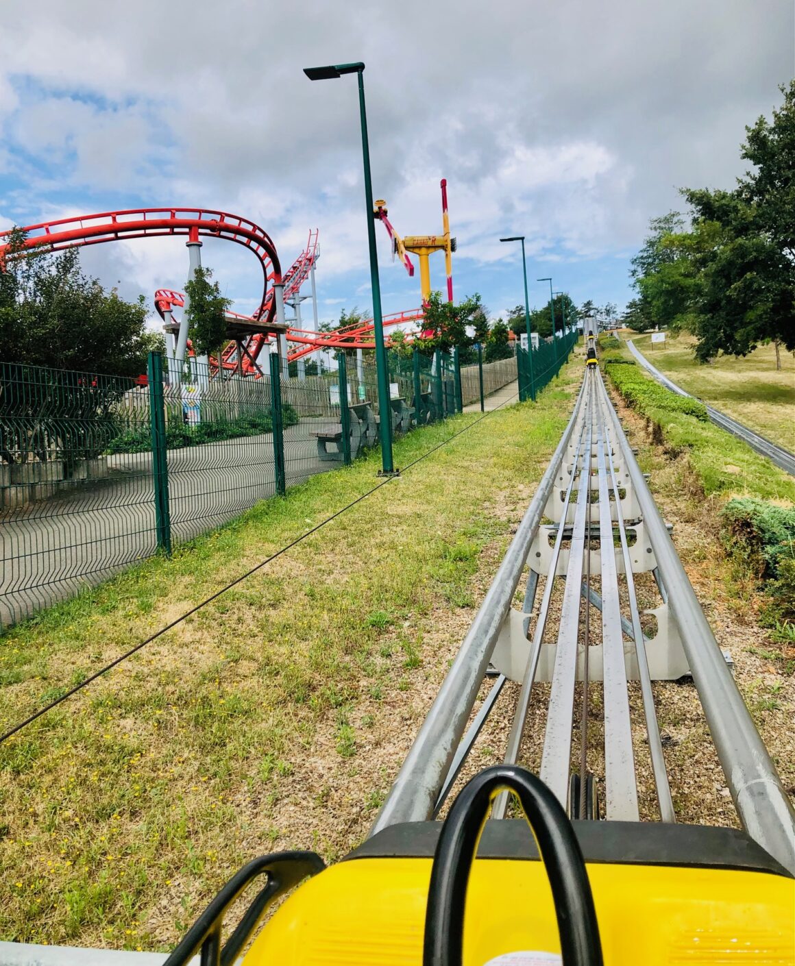 ❤️Les luges d’été: deux parcours, l’un sur piste classique et l’autre sur rail, sont installés sur le terrain pentu du parc. On peut les “rider” seuls ou à deux, en autonomie, à la vitesse que l’on veut. Le parcours est fluide et on a eu la chance de pouvoir en faire des descentes à volonté ! C’est rare dans des parcs de loisirs.