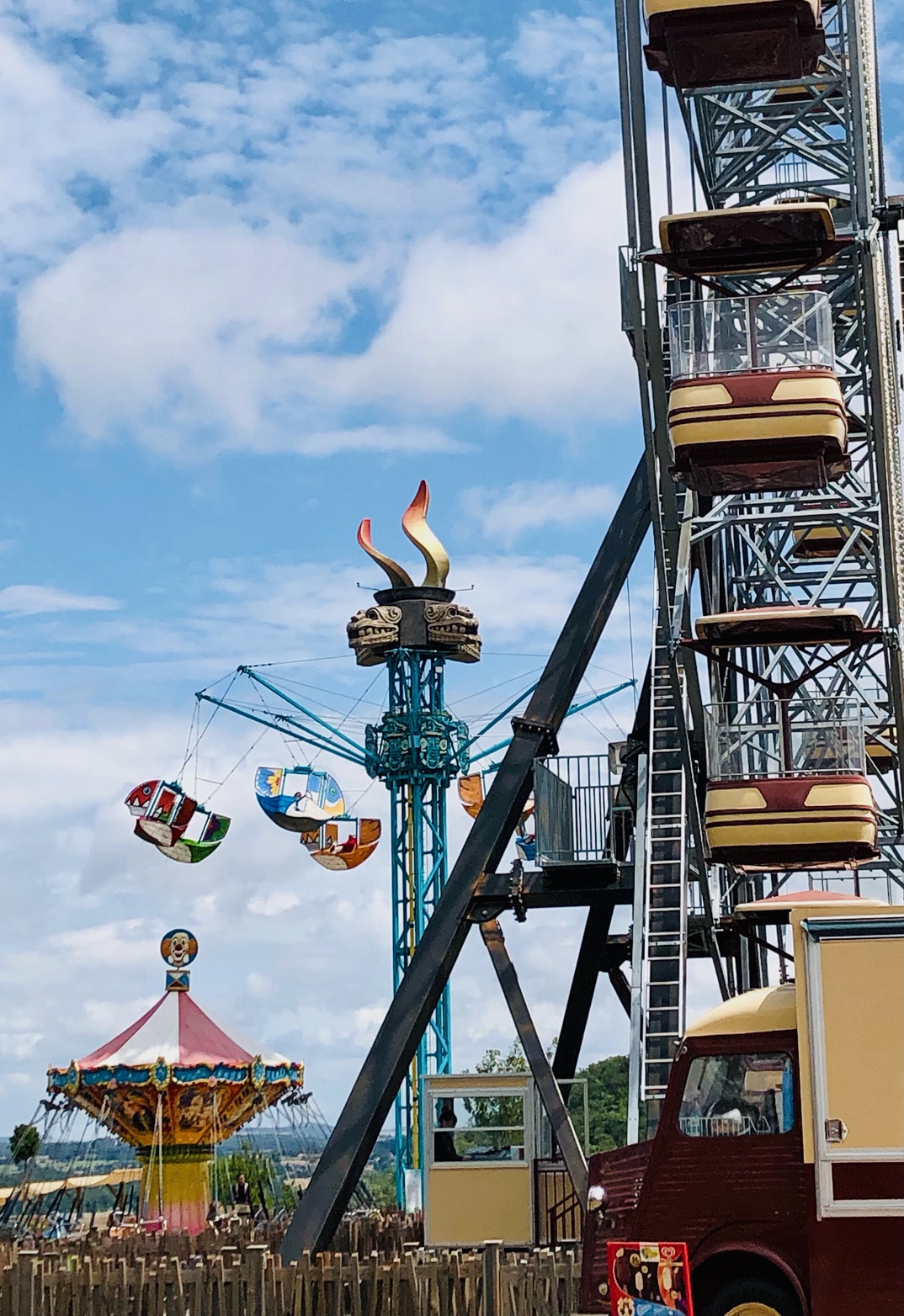 D’autres attractions remportent aussi tous les suffrages des visiteurs les plus jeunes. C’est le cas de la grande roue, très familiale et qui offre un panorama sur le parc et bien au-delà, notamment le bassin industriel et minier du Creusot-Montceau les Mines et sa jolie campagne. Le bocage charolais n’est pas loin.