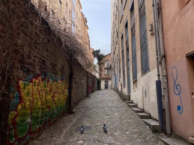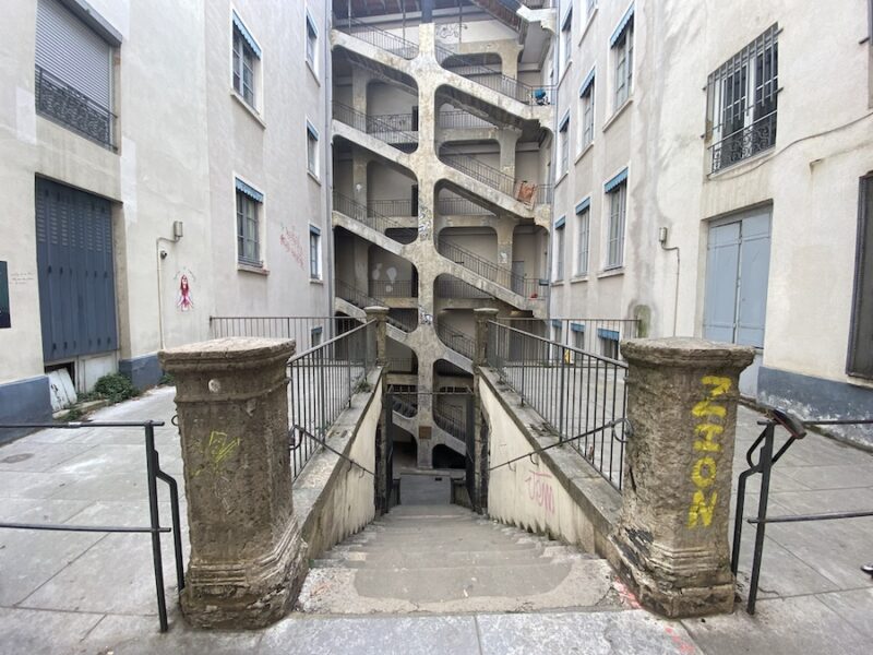 On continue notre ascension en ouvrant grand les yeux. Le parcours s’amuse à nous perdre dans les Pentes en empruntant quelques traboules dont la fameuse cour des Voraces.