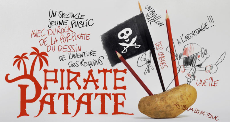 Studio Fantôme déboule à l’Épicerie Moderne pour un concert dessiné définitivement rock. Ce spectacle pluridisciplinaire déjanté mêlant animation, vidéo, théâtre, jeux d’ombre, chanson, musiques actuelles et… dessin en direct, nous mène à la rencontre de la petite Noémie. Mais méfiez-vous des apparences ! La timide jeune fille connue aussi sous le pseudo de Pirate Patate, s’avère être également une véritable terreur semant la panique à travers les 7 mers ! Cette jolie fable qui prône le pouvoir de l’imagination et la force de l’amitié est aussi une ode à la différence et à l’émancipation du regard que portent les autres sur soi. Let’s rock…