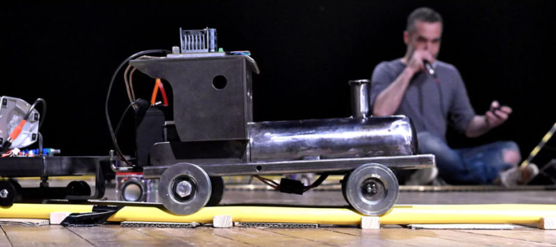 Céline Garnavault, Thomas Sillard et Laurent de la compagnie La Boîte à sel renouvellent le spectacle jeune public et nous entrainent ce week-end dans une incroyable odyssée miniature au TNG. Alors que sur scène le train électrique se met en branle sur un immense circuit, le comédien et beatboxer Laurent Duprat aka L.O.S devient tout à tour chef de gare, passager, aiguilleur ou aventurier pour mieux nous immerger dans son univers minuscule entre jeux d’enfants et un monde imaginaire minuscule. Ce théâtre d’objets 2.0 rythmé par les bruits de signalisations, de passages à niveau ou autres barrières automatiques nous plonge au cœur d’un génial réseau ferroviaire à grand renfort de voix, d’amplifications de boucles sonores, de boîtes à rythme et de beatboxing débridé.