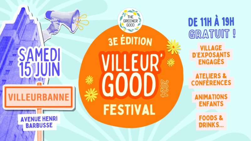 Dans la famille de The Greener Good festival, je demande le petit frère. Villeur’Good Festival met en lumière les initiatives villeurbanaises pour accompagner la transition écologique. Village d’exposants, ateliers, animations enfants, vous pourrez déambuler avenue Henri Barbusse pour voir le monde en vert et voir le futur sous une autre lumière.