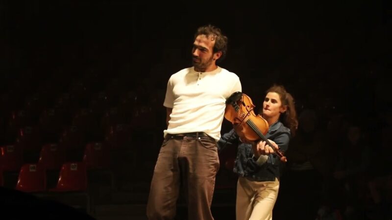 Un pont, un envol, et surtout une confiance aveugle. C’est ce que nous propose le duo Marianna Boldini et Basile Forest dans cette création spectaculaire où les corps s’envolent au-dessus de nous. Spécialistes du « main à main », les deux acrobates jouent avec le vide. Deux musiciens accompagnent les voltiges en direct, créant une atmosphère enivrante digne des fins de soirées festives dans les Balkans.