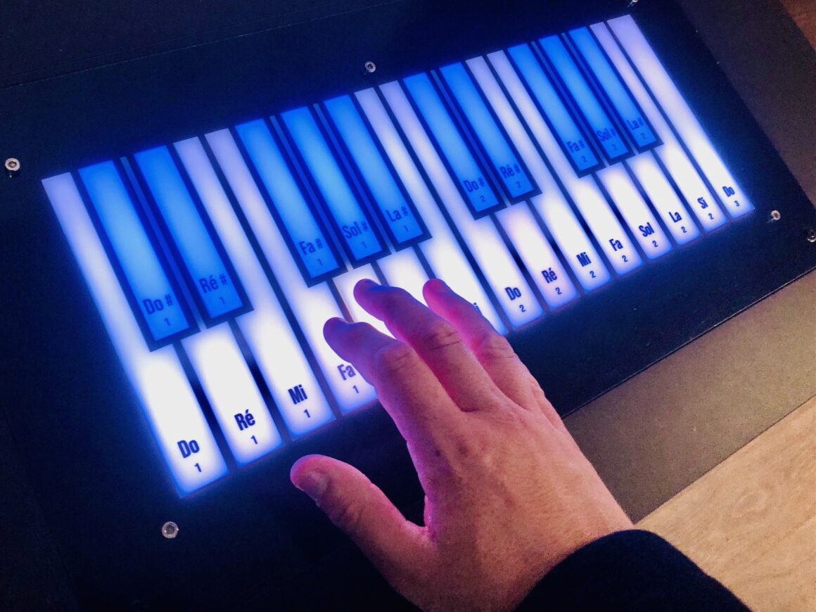 Mais dans ça résonne on n’interagit pas uniquement avec les autres : on a aussi des interactions avec les machines. Tablettes, poste d’intelligence artificielle, micros, claviers électroniques : la technologie n’est pas incompatible avec le ludique. Et encore une fois, faire des maths, c’est indolore. Nos deux coups de cœur vont à l’expérience musicale, ainsi qu’à l’atelier de la « losonnante »où l’on expérimente un principe assez saisissant, mais bien réel : nous pouvons écouter avec les os !