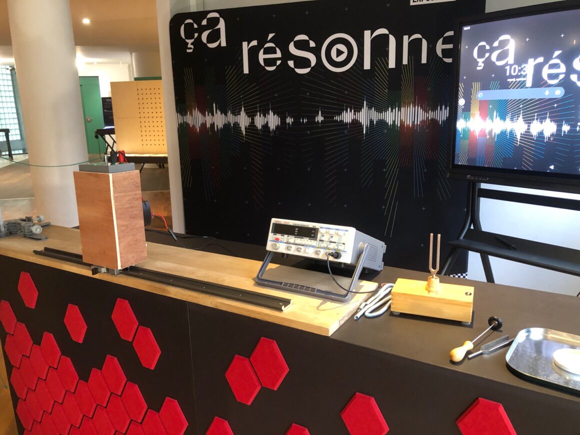 Raisonner et résonner, voila ce qui est au cœur de cette exposition. La question de fond ? Comment représenter un son, comment le « voir » en utilisant la science ? Les mathématiques, l’informatique, la physique sont évidemment bien utiles pour réfléchir sur les notions d’intensité, de fréquence, de vibration, de hauteur… Mais pas paniqué, tout est conçu à la portée du jeune visiteur (de 12 ans et plus) et les parents y trouvent leur compte. L’idée de la MMI est d’inclure toute la famille dans son public cible, voire de soigner quelques traumas scolaires de l’enfance des parents !