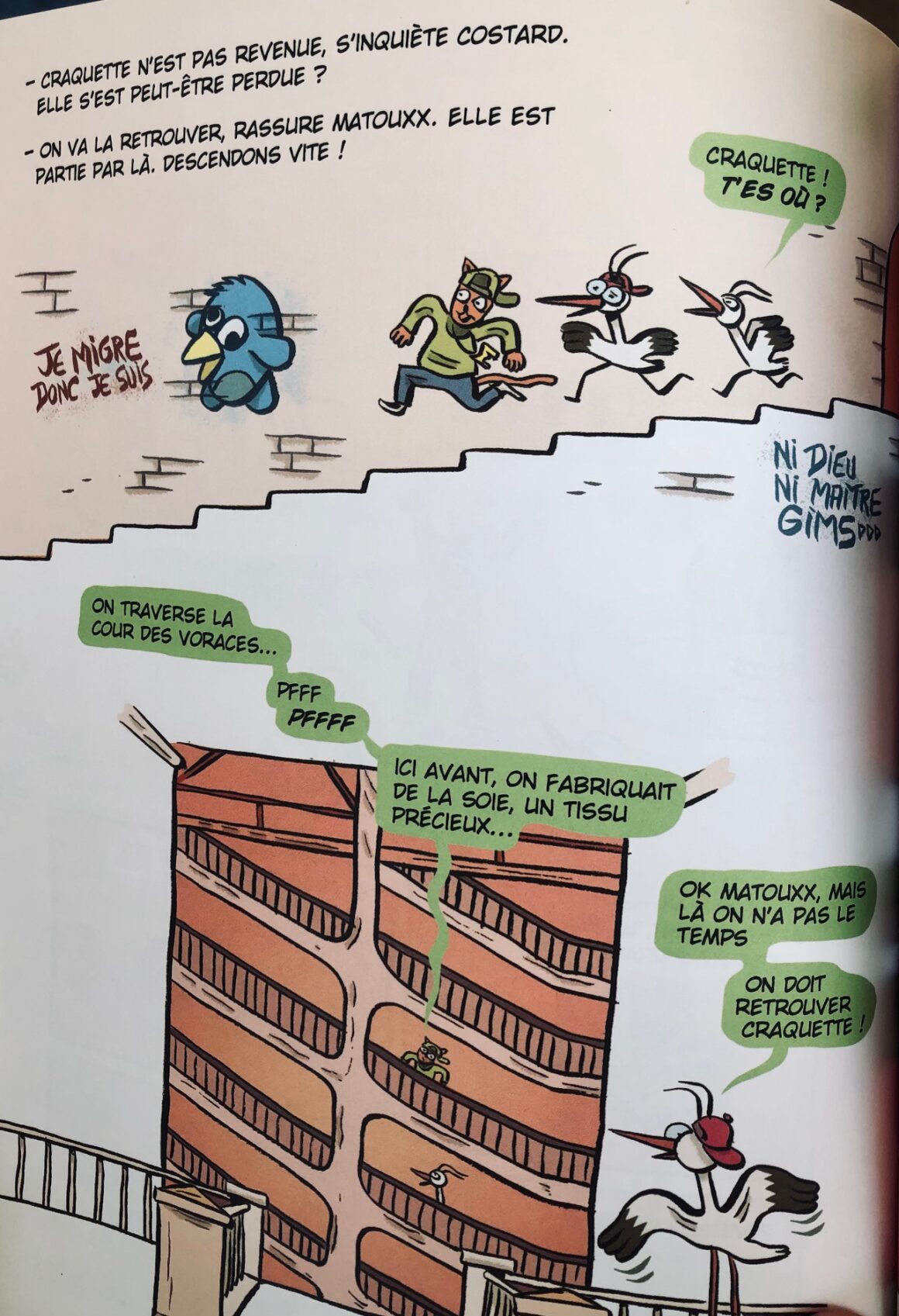 Le voyage à Lyon: Une aventure des trois cigognes. On suit les aventures de trois oiseaux migrateurs en visite forcée à Lyon. 160 pages de rencontres, d’humour et de références à la ville. On aime le personnage rabat-joie qui répète sans arrêt ça vaut pas Paris! Une petite pépite pour tous les gones en âge de lire. Et aux mêmes éditions (lyonnaises!) Les Crocos, Petit Pigeon à Lyon (0-3 ans) et Mon doudou de Lyon (3-5 ans). L’attachement à sa ville, ça s’entretient dès le plus jeune âge!